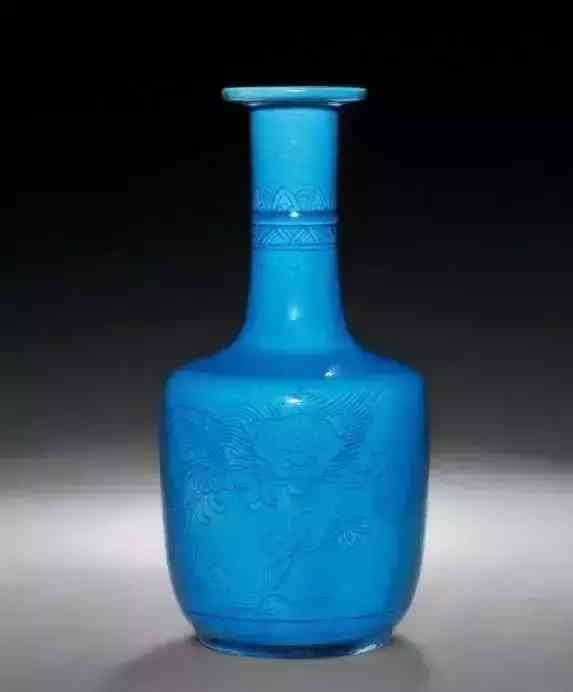 造型为撇口,长颈,溜肩,敛腹,圈足,下腹部浮雕壹周菊花瓣为饰。为清代康熙朝独特器形之壹。