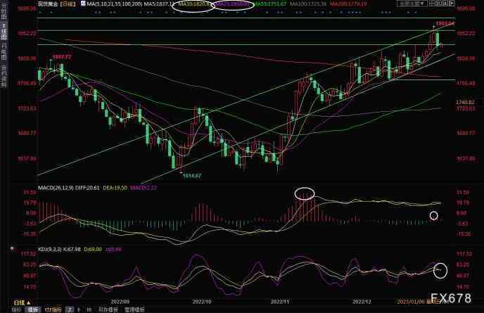 整体来看,多位美联储官员倾向于进一步加息且较长时间维持高利率水平以达成2%的通胀目标,ADP和初请失业金人数等就业数据也给美联储进一步加息提供数据支撑,美元指数短线初步见底并偏向进一步震荡上行,这对金价不利;金价在技术面也出现了一些见顶信号,除非晚间非农数据意外表现极差,否则金价短线存在进一步下行风险,下方分别关注10日均线1820.81和21日均线1808.00附近支撑。