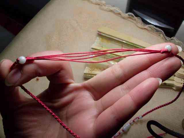 下面再上点玉器挂绳的拉伸方法: 一般我们买到的挂绳都是可调节的,周周做的挂绳都是可调节的。怎样拉伸到适合自己的长度呢? 看到绳子时是这样的(下图):
