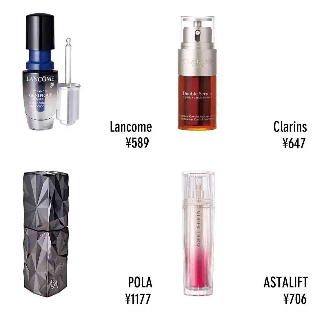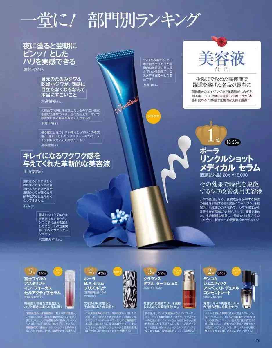 2-5位分别是Lancome安瓶、Clarins双萃精华、POLA黑B.A精华和富士旗下的艾诗缇ASTALIFT IN-FOCUS精华。