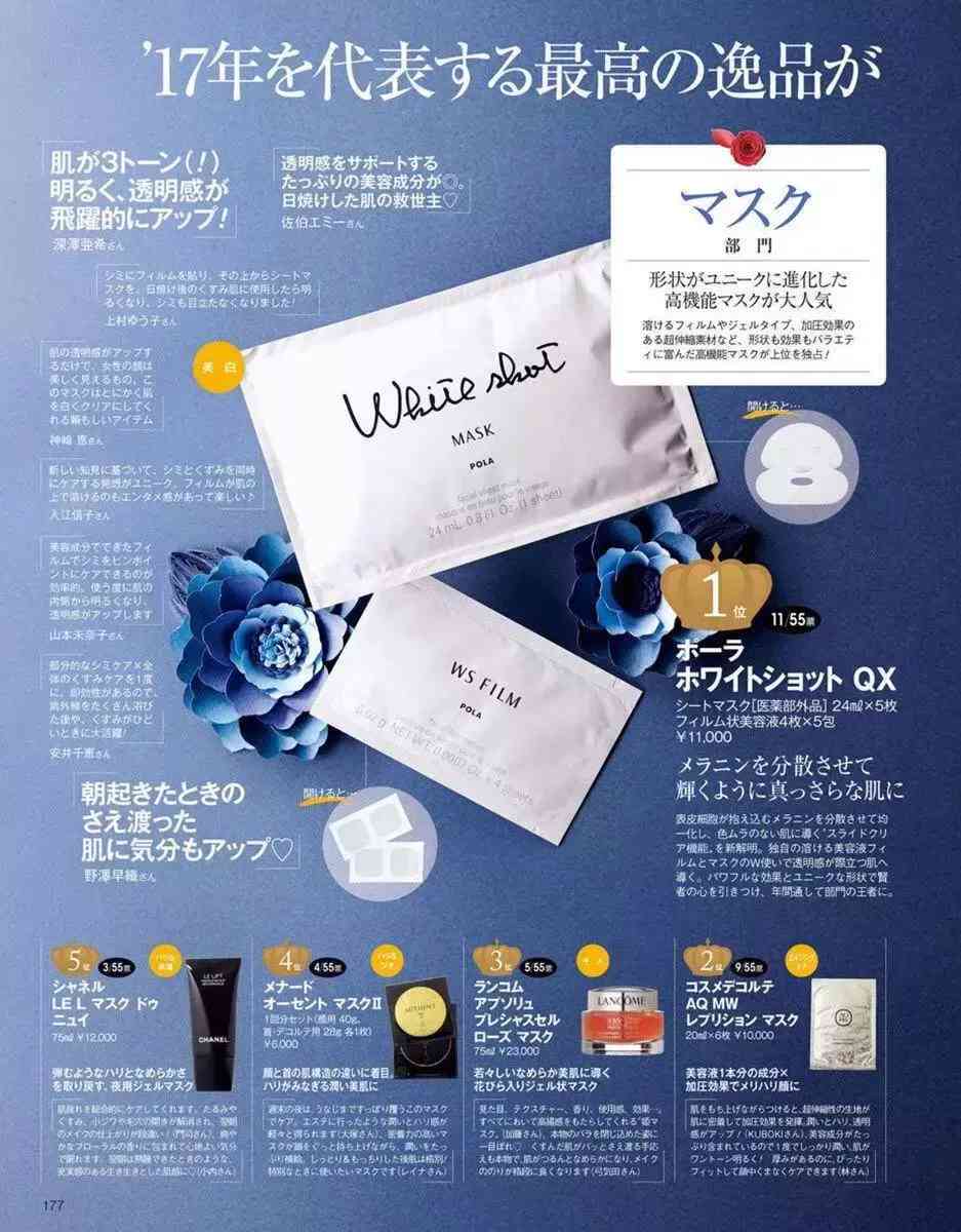 一位是POLA家的新款美白面膜,647元包含5片面膜和5组局部美容液敷片。