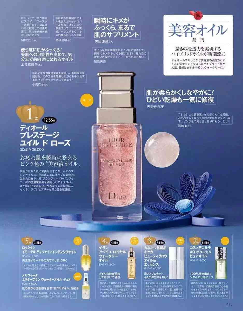 获得冠军的是Dior花蜜玫瑰润养精油,售价约1529元,30ml。