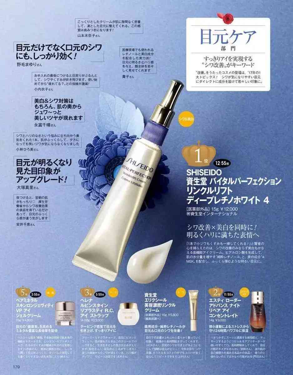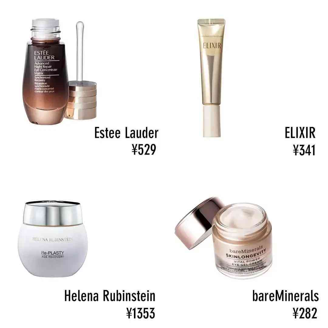 2-5位分别是雅诗兰黛小棕瓶密集修护眼精华、怡丽丝尔抗皱精华眼霜、赫莲娜白绷带眼霜和bareMinerals的眼霜。