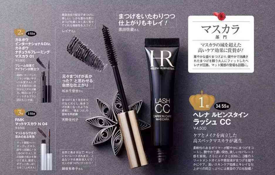 睫毛膏冠军同样是综合榜单就有见过的赫莲娜睫毛CC,这只貌似在日本蛮火的,国内风声倒是不大,综合评分这么高搞的我想代购一支回来试试。约265块。