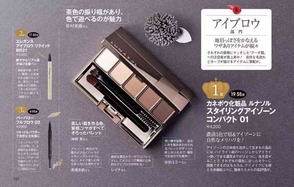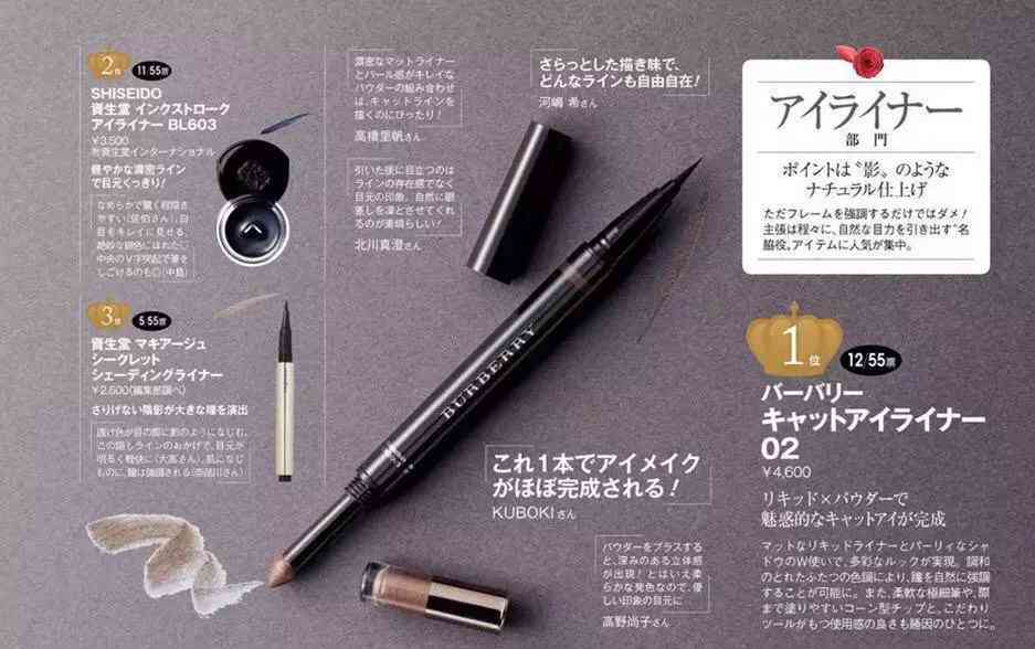 亚军是Elegance的液体眉笔BR21,季军挺意外的,来自Burberry的双头眉笔02号。也是能看出来,日本妹子对于眉妆来说,相比灰色更加喜爱棕色系。