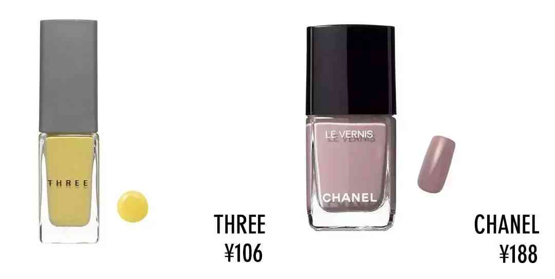 第三名有两位,分别是THREE #67适合春夏明亮的黄色和Chanel #578超有气质的奶茶色。