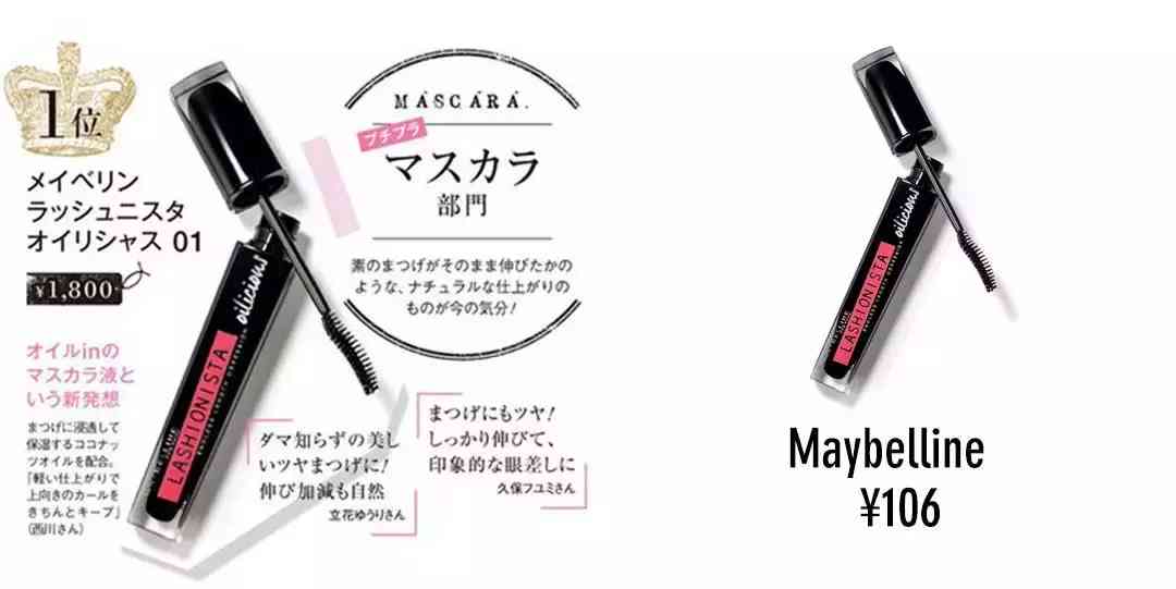 最佳睫毛膏是美宝莲摩登长翘LASHIONISTA睫毛膏,纤长卷翘还抗晕染。貌似是日版的。