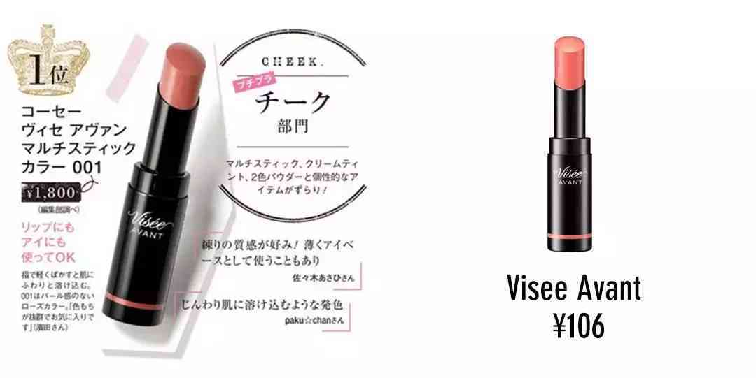 最佳腮红居然是来自Visee Avant的口红001号,虽说是口红,不过用在脸颊上当腮红的效果也很好,自然又有气色。
