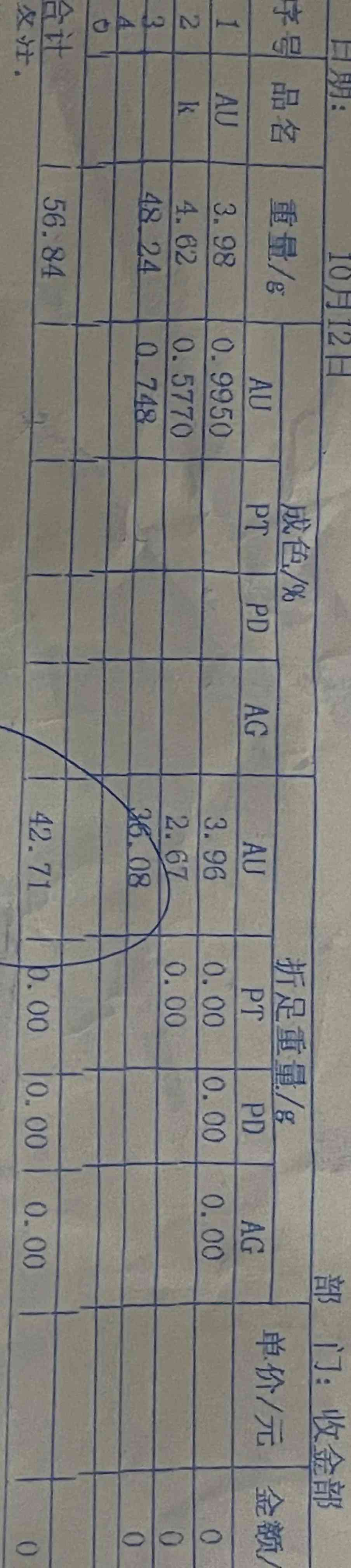 全部都熔好了,就开始检测。当检测出来成色以后,看成色多少。然后折成黄金的克数就好了,折成的克数就按照黄金的价格来回收。