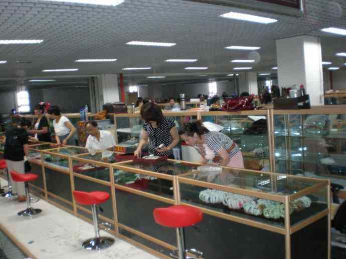 这里喊价也比较实在,大多数商家是自己收的料子,自己雕刻,成本比较低,因为做批发,基本上赚到一半就可以卖,你在这里买到比外面店面便宜四五倍的和田玉,也是多转几家,多对比一下价钱。