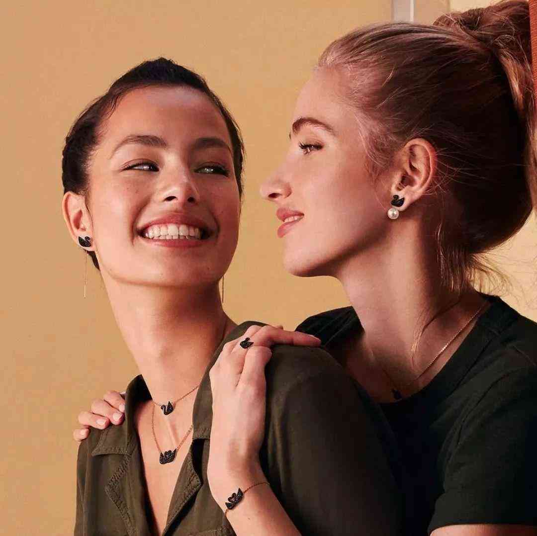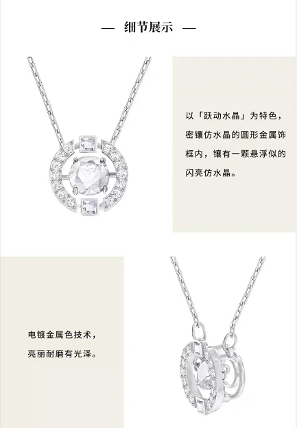 这是施华洛世奇家独特的悬浮技术和双臂悬挂设计,项链中间的圆形仿水晶会因为重心失衡而180°晃动。