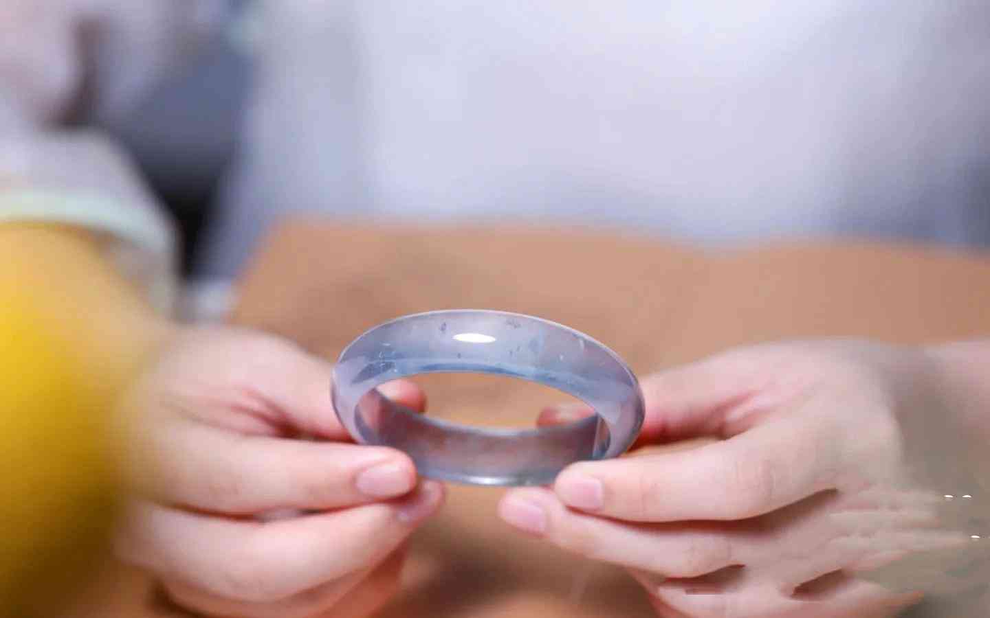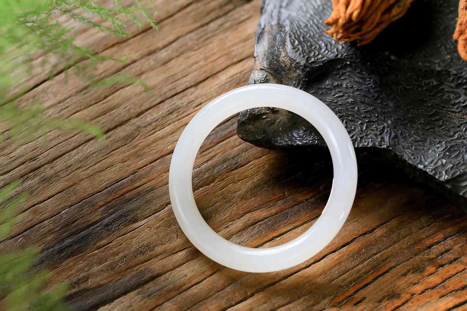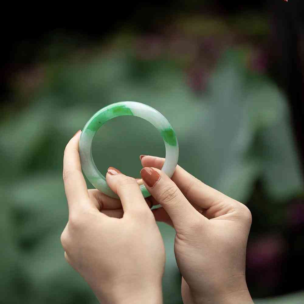 除了透过光线观察有没有杂质,还可以用手感觉玉镯的质感,不发糠、不发涩的玉镯,触手温润细腻,应是上品。