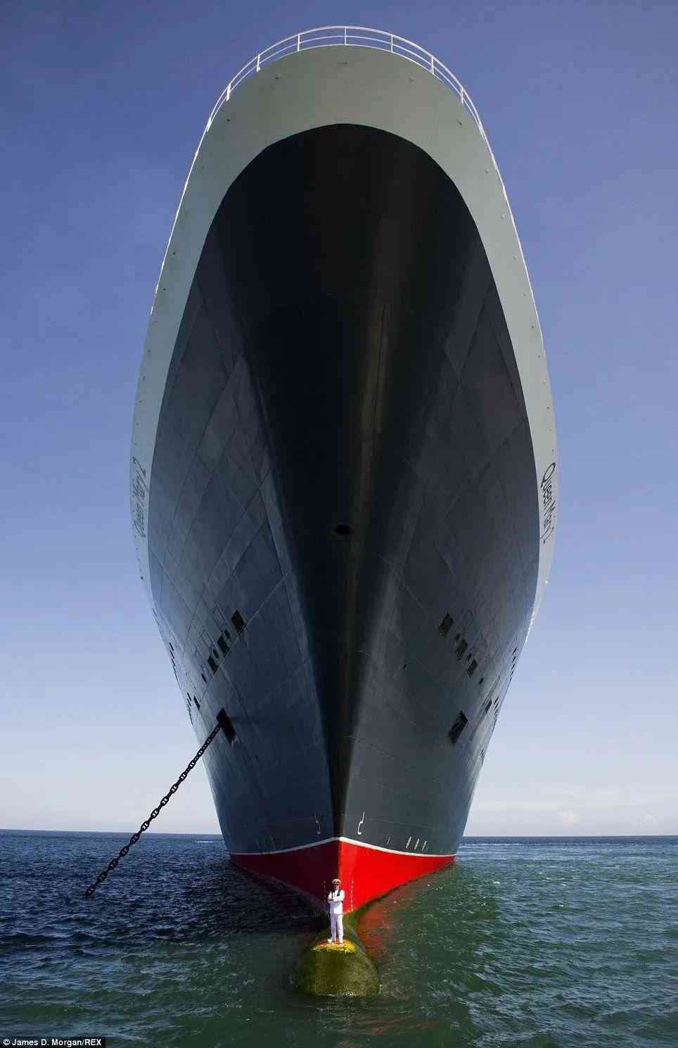 曾经世界上最大的海上远洋游轮——玛丽皇后2号,以及它的船长…就是最下面那个小人…