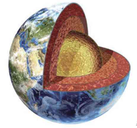 形象地说,地球就是一颗巨大的鸡蛋——薄薄的蛋壳,黏稠的蛋清,中间还有个鸡蛋黄。当然,我们还可以采取更精细的分析模式,把地球切分成很多同心球,就像洋葱那样剥开一层又一层,每一层都起一个名字,这在地质学上很有必要。