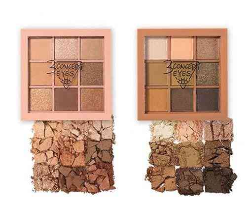 通过对比两家3CE的同款九色眼影盘发现,从外观上看,二者的眼影色号极为相似,都是南瓜色,并且都是以黑色的盘身和透明的盘面相搭配,透明盘上也都印有标志性的三角式LOGO。