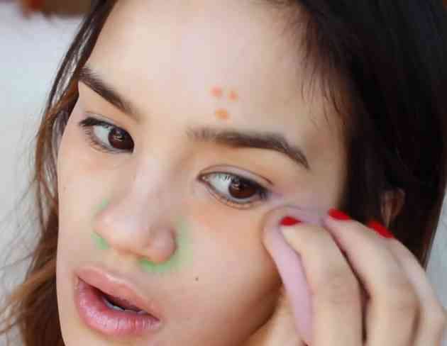 3. 鼻翼两侧:鼻翼两侧如果只靠肤色的遮瑕仍旧遮不住时,可以加一点绿色的遮瑕膏。