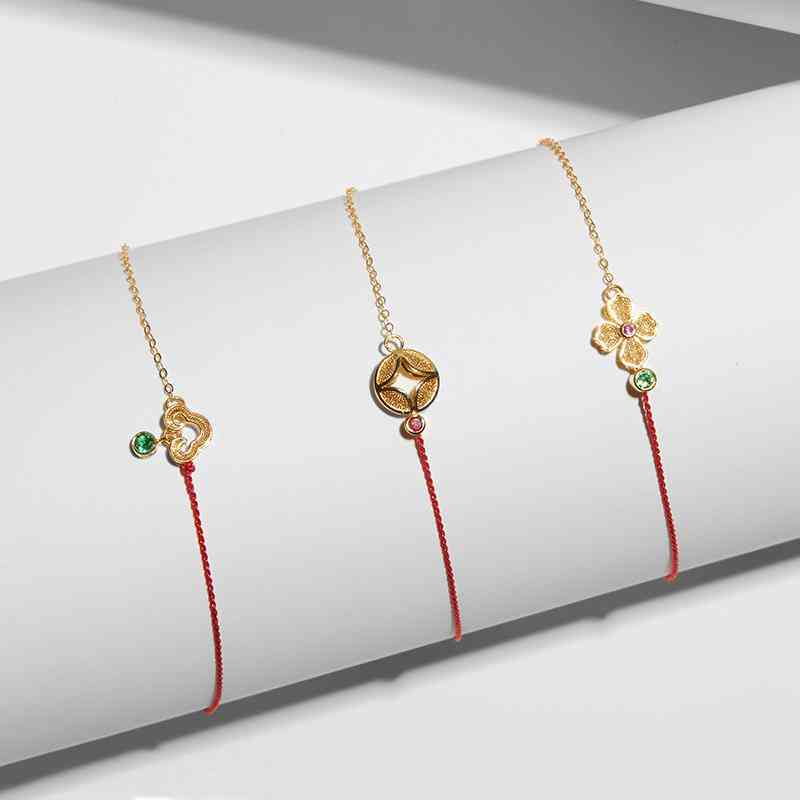 TOP1:欢玺如意18K金宝石手链 开运红绳 手工非遗花丝镶嵌