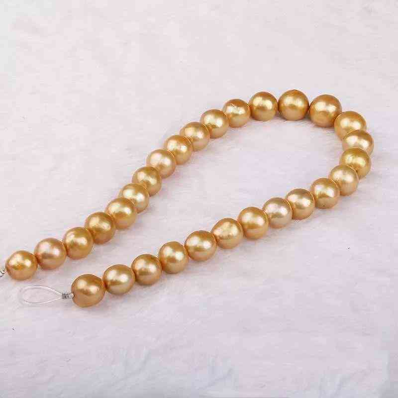 网上一搜“金珍珠”,会出现两种结果,一是南洋金珠,二是淡水金珠。不少人喜欢购买淡水金珠,因为颜色漂亮、价格便宜,大概小几千就能买到一串,比起动不动就数万的南洋金珠来说,划算太多了!但是,你们有没有考虑过:淡水珍珠真的有纯正金色的吗?可以肯定的告诉你,没有!淡水珍珠只有偏金色、香槟色、橙金色等等,如果是纯正浓郁的金色,百分百是染色的。染色珍珠却卖出远高于普通淡水珍珠的价钱,也是很可笑。