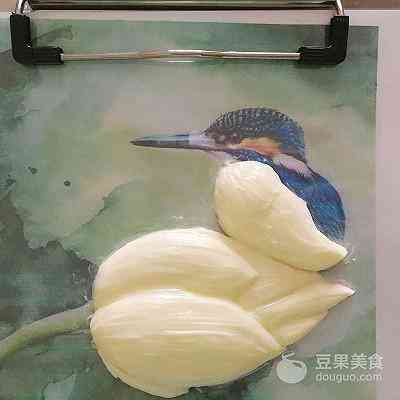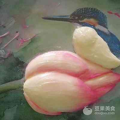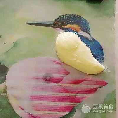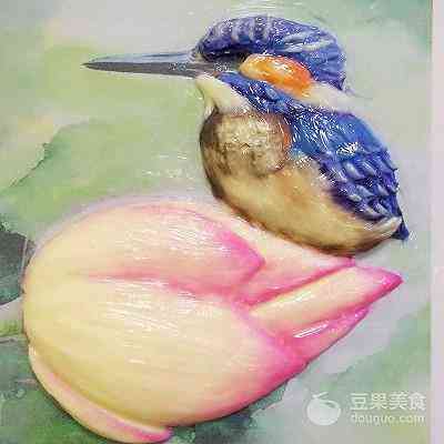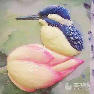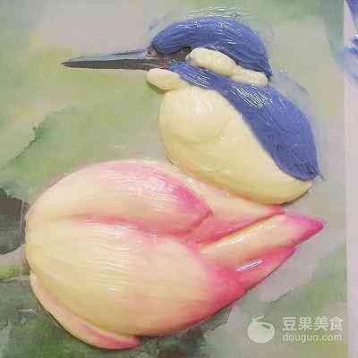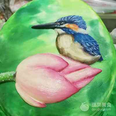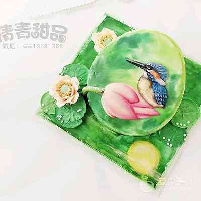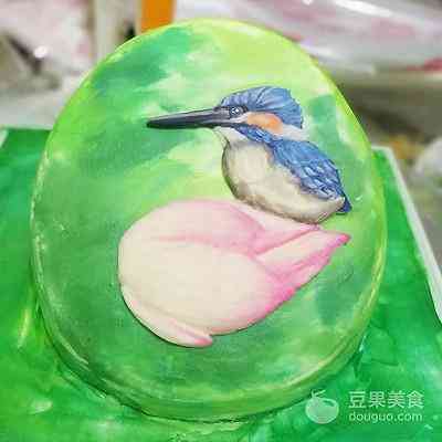 小荷才露尖尖角,早有小鸟立上头… 一直想尝试制作一款3D手绘场景蛋糕,当看到这副插画: 含苞待放的初荷…精灵可爱的鸟儿…心中想着就是它啦… (菜谱下面分享给大家这副插画) 可是只有一支初荷、一只鸟儿装饰蛋糕又觉得有些单调,于是想到搭配一些裱制的荷花、荷叶。 荷叶目前还没见过网上哪位裱花老师做过,只能想想办法!于是灵机一动,用123号裱花嘴转圈裱制一个圆形,再借助画笔找平中间部位,画出荷叶的纹路,效果竟然很好…(不禁小小得意一下) 为了蛋糕口味更好,使用戚风蛋糕+淡奶油抹面,只有手绘和裱花部分是奶油霜。