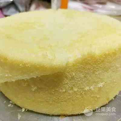 11、6寸戚风蛋糕胚,从二分之一处下刀,斜切,如图所示。