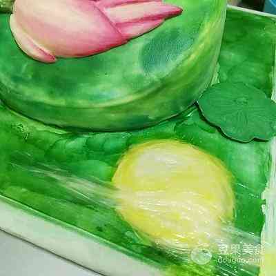 21、在荷叶上放上几粒珍珠糖,模仿荷叶上的露珠… 成品就是这样啦…