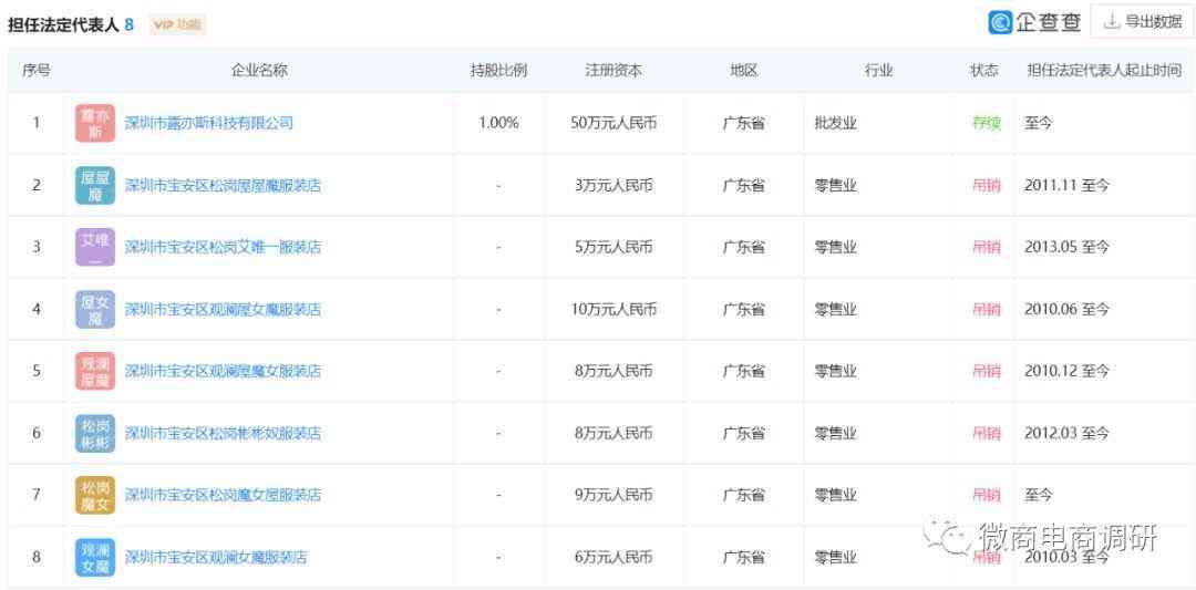 据企查查显示,在眼下,露亦斯公司法定代表人周冰涛名下共有8家企业,其中7家已处于吊销的经营状态。