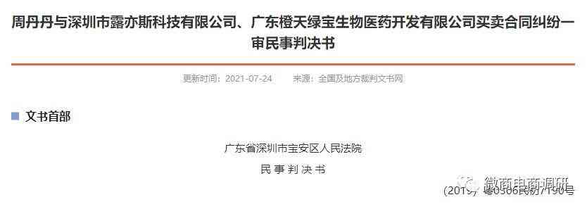 无独有偶,《方盈与深圳市露亦斯科技有限公司、广东橙天绿宝生物医药开发有限公司买卖合同纠纷一审民事判决书》、《刘玉梅与深圳市露亦斯科技有限公司、广东橙天绿宝生物医药开发有限公司买卖合同纠纷一审民事判决书》所对外披露的内容也无外其中。