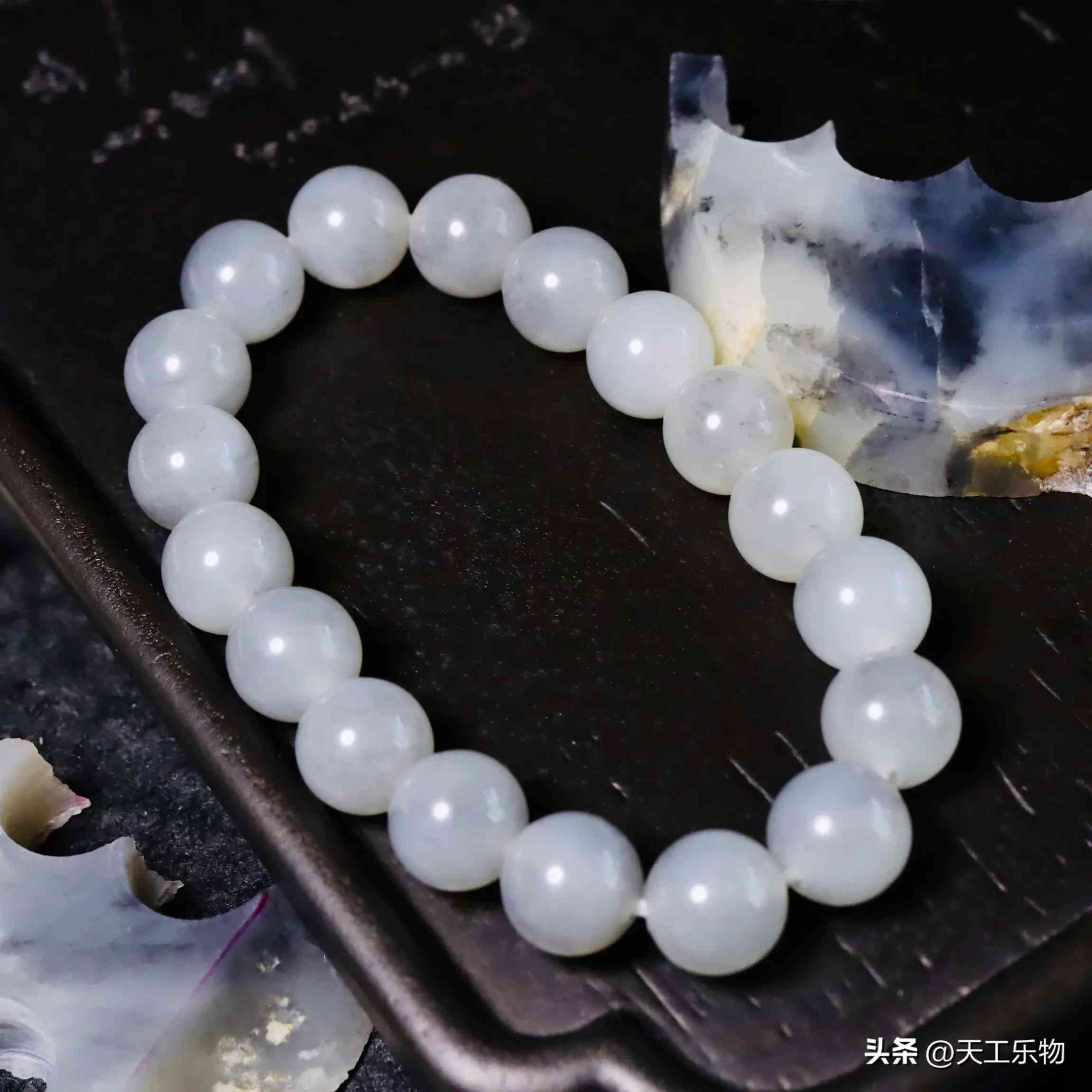 最漂亮的还是白玉部分开出的手串,羊脂一般的油润糯感,据说是老板自留了。
