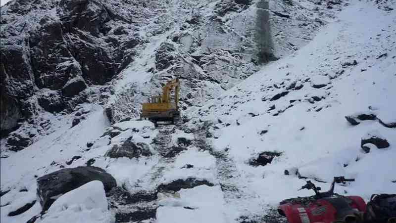 玉石矿的挖机正在修路