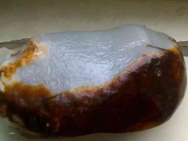 4、糖玉:因白玉、青白玉、青玉被铁、锰等矿物质氧化浸染而形成。所以在白玉、青白玉、青玉上呈现红褐色、黄褐色、黑褐色等色调,根据氧化浸染的程度,如浸染的糖色部分小于30%就叫糖白玉、糖青白玉、糖青玉,大于85%时就叫糖玉。糖玉只产于山料,由于可用糖色进行俏雕,所以糖玉也很受青睐。还有一种被称为十分稀罕的红玉,可能就是由非常纯正的红糖玉浸染形成的。