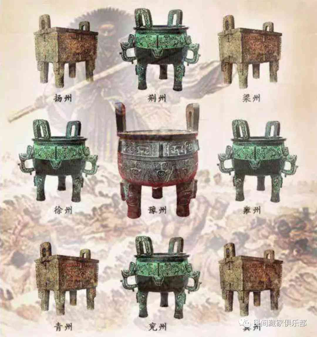 九鼎被称为“华夏至尊神器”,是夏、商、周三代象征着至高王权的传国之宝,当年大禹划分天下为九州,铸九鼎,将全国九州的名山大川、奇异之物镌刻于九鼎之身,其分量之重,现今要是存世绝对是镇国之宝。至于它们的下落,一说是秦始皇融九鼎重铸“十二金人”,一说是沉没于今江苏的泗水中,但历代人打捞均徒劳而返。
