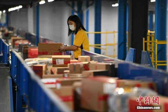物流工人对网上下单的商品进行分拣、装车。 中新社记者 崔楠 摄