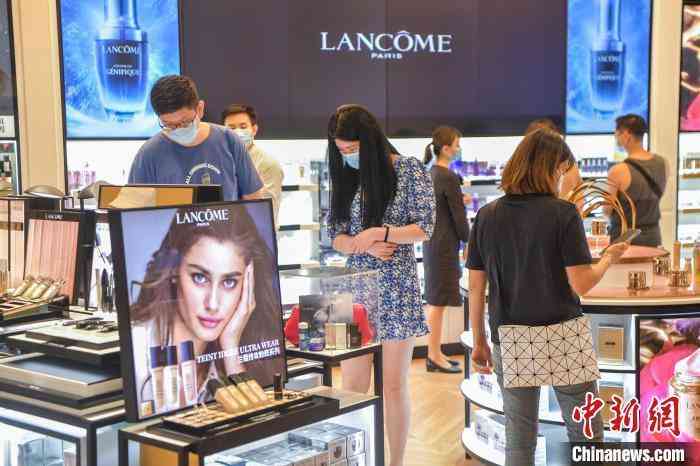 游客在海口日月广场免税店内选购化妆品。 骆云飞 摄