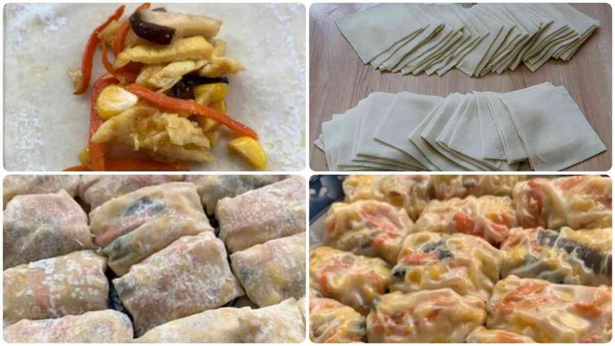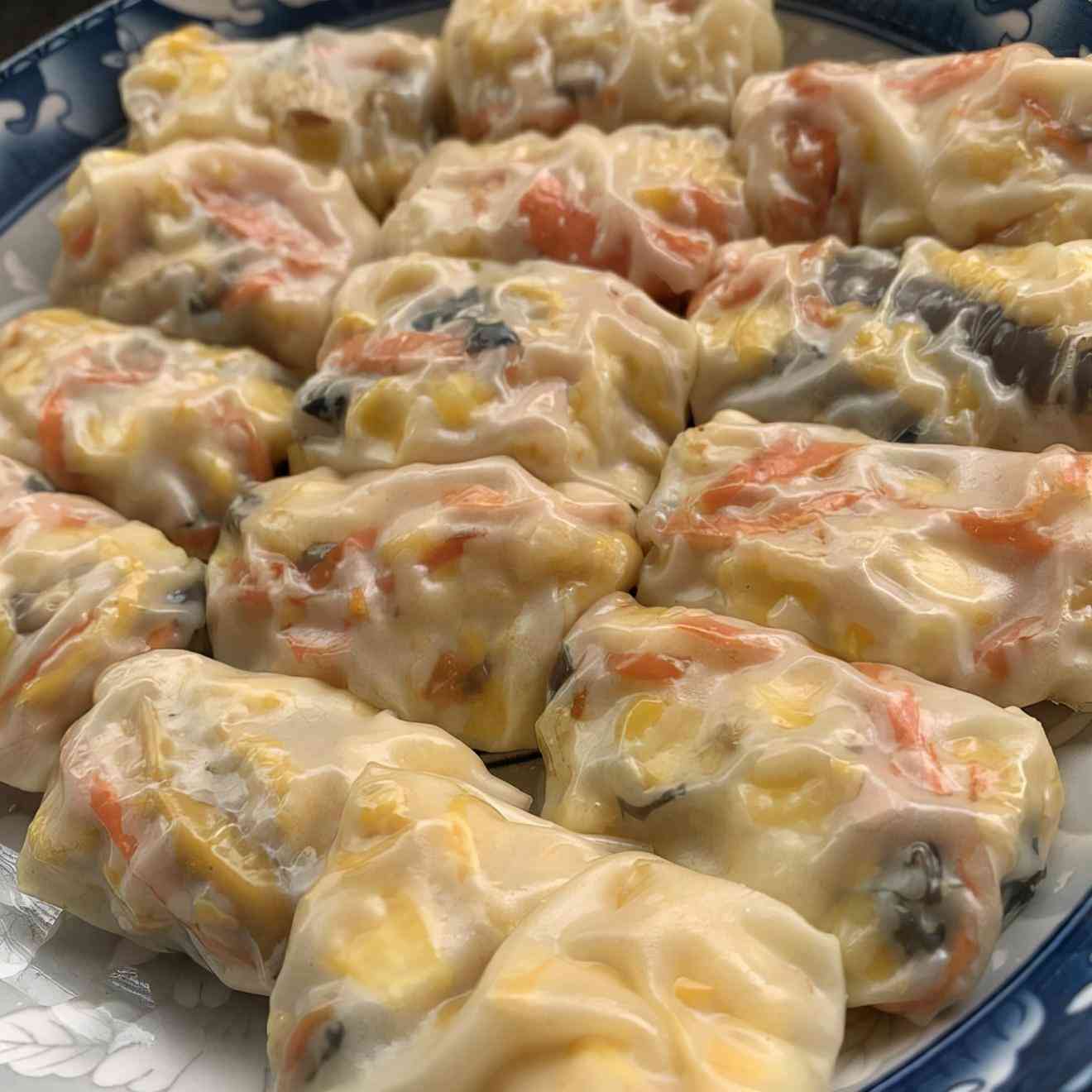 所需食材:玉米、鸡蛋、胡萝卜、混沌皮、木耳、香菇