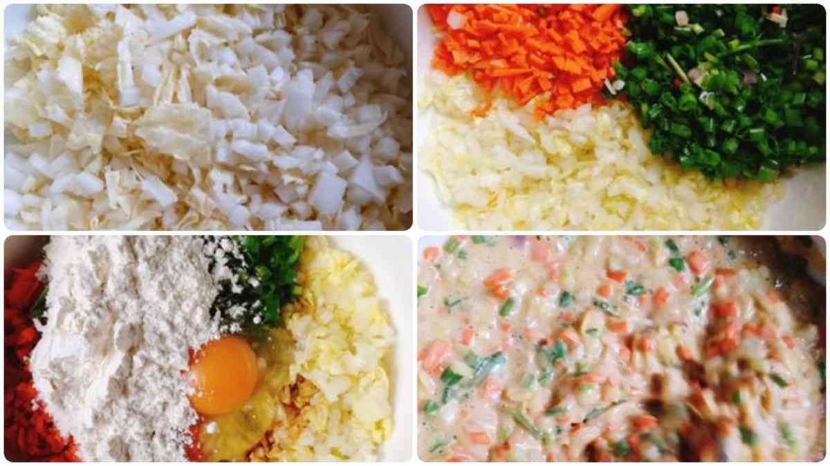所需食材:鸡蛋、胡萝卜、面粉、白菜、葱花