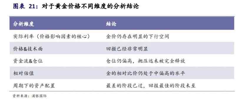 浦银国际估测了不同场景下的实际利率水平,并基于实际利率测算对应的金价。即使在乐观场景下,金价上行空间也有限,在基准情况或者进行不同场景的概率加权,实际利率视角显示黄金价格都存在非常明显的双位数下行空间。现在并非抄底时点,但可以留意金价的变化,等待未来的建仓机会。