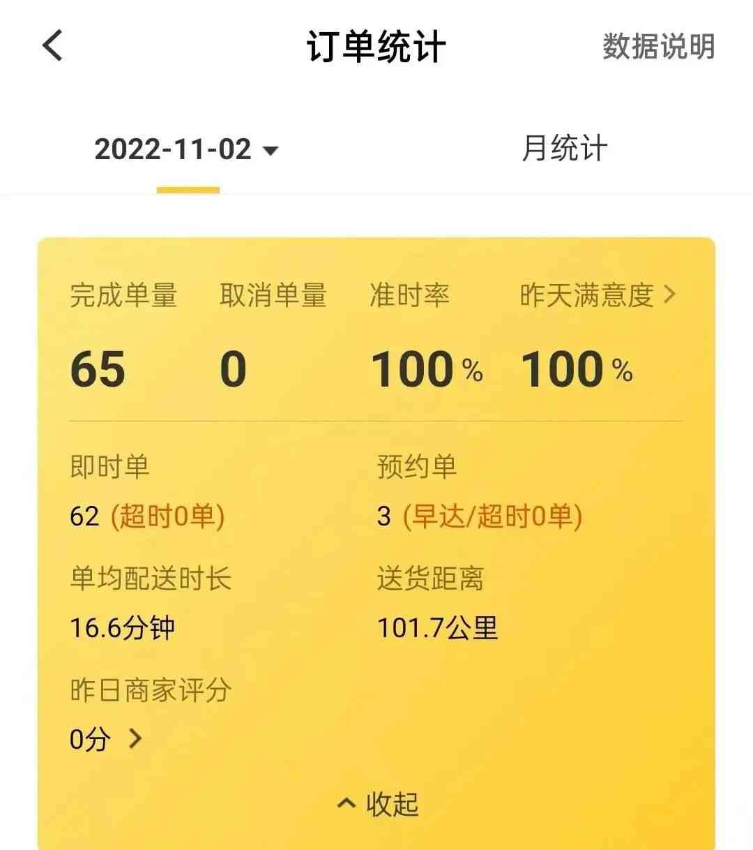 这一天,他整整工作了16个小时,共派送64单,这些数字构成了一个普通外卖员的一天。