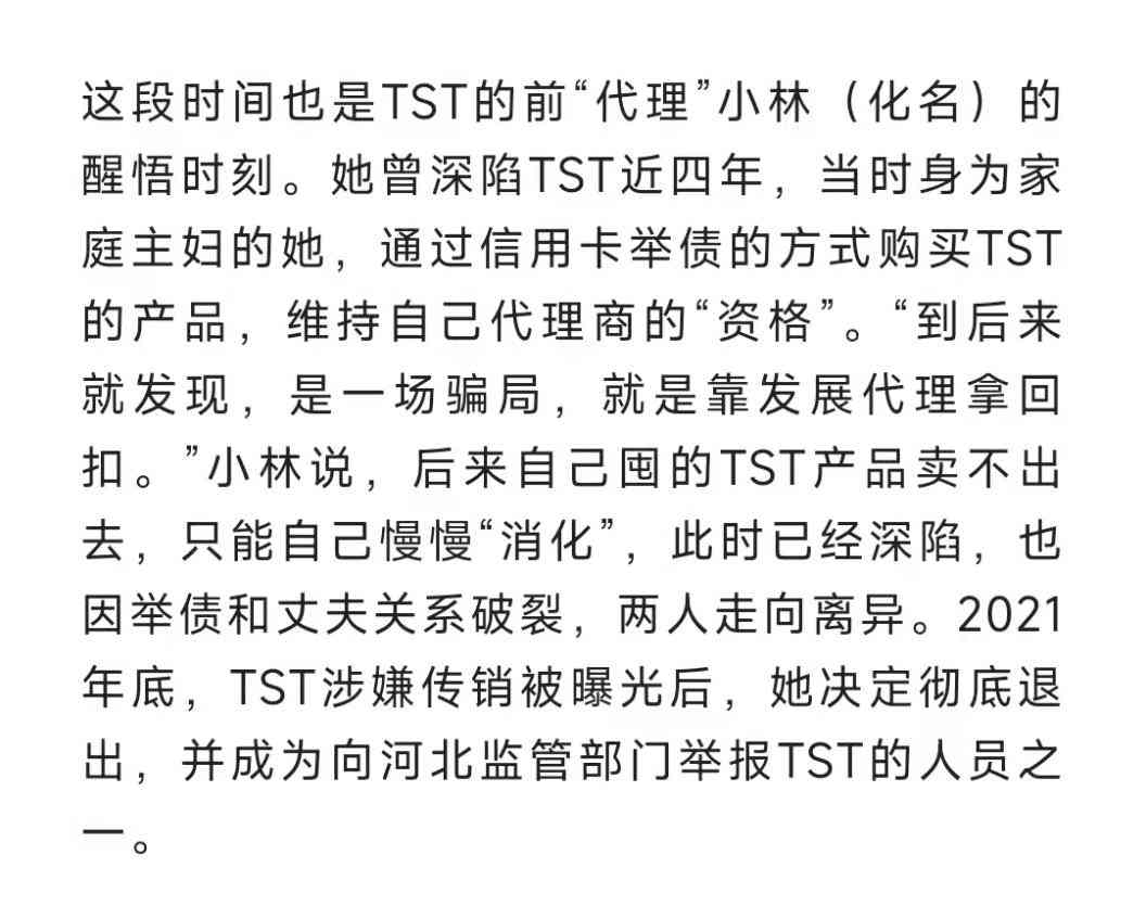 为了传销TST品牌的产品,据受害者透露,张庭对他们这些微商代理疯狂洗脑,怂恿他们大量囤货,设计传销骗局发展下线,不少人因此家破人亡。