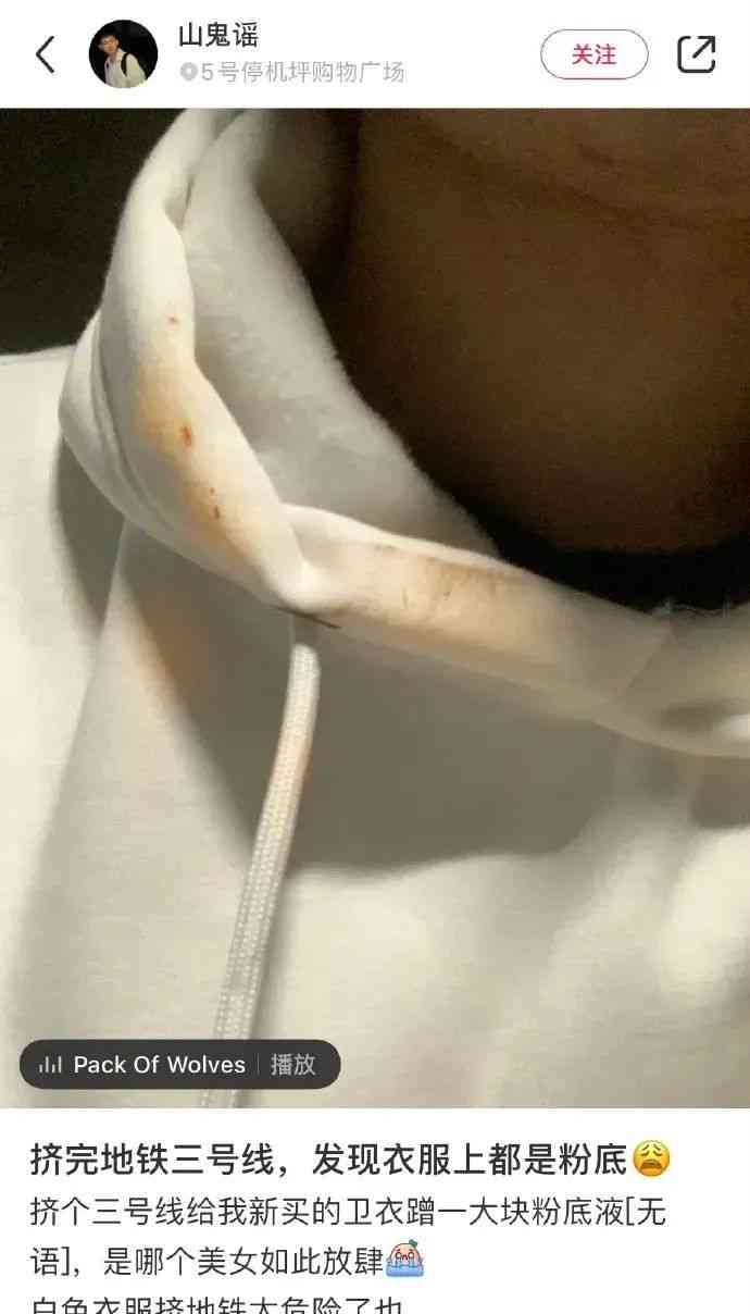 有的男生挤完地铁,发现自己白色的卫衣上都是其他小姐姐的粉底液。