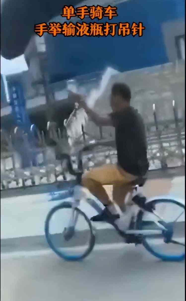 手举药瓶的骑车男子,连几小时打点滴的时间都没。