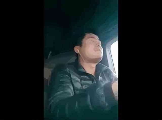 大货车被人偷了油,司机一边抹着眼泪一边往前走。