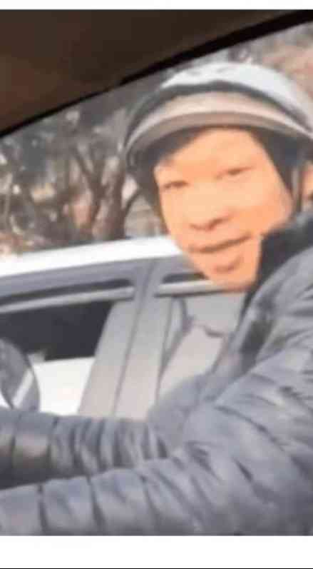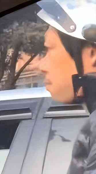看到车里露出的镜头,他微笑着表示没事。