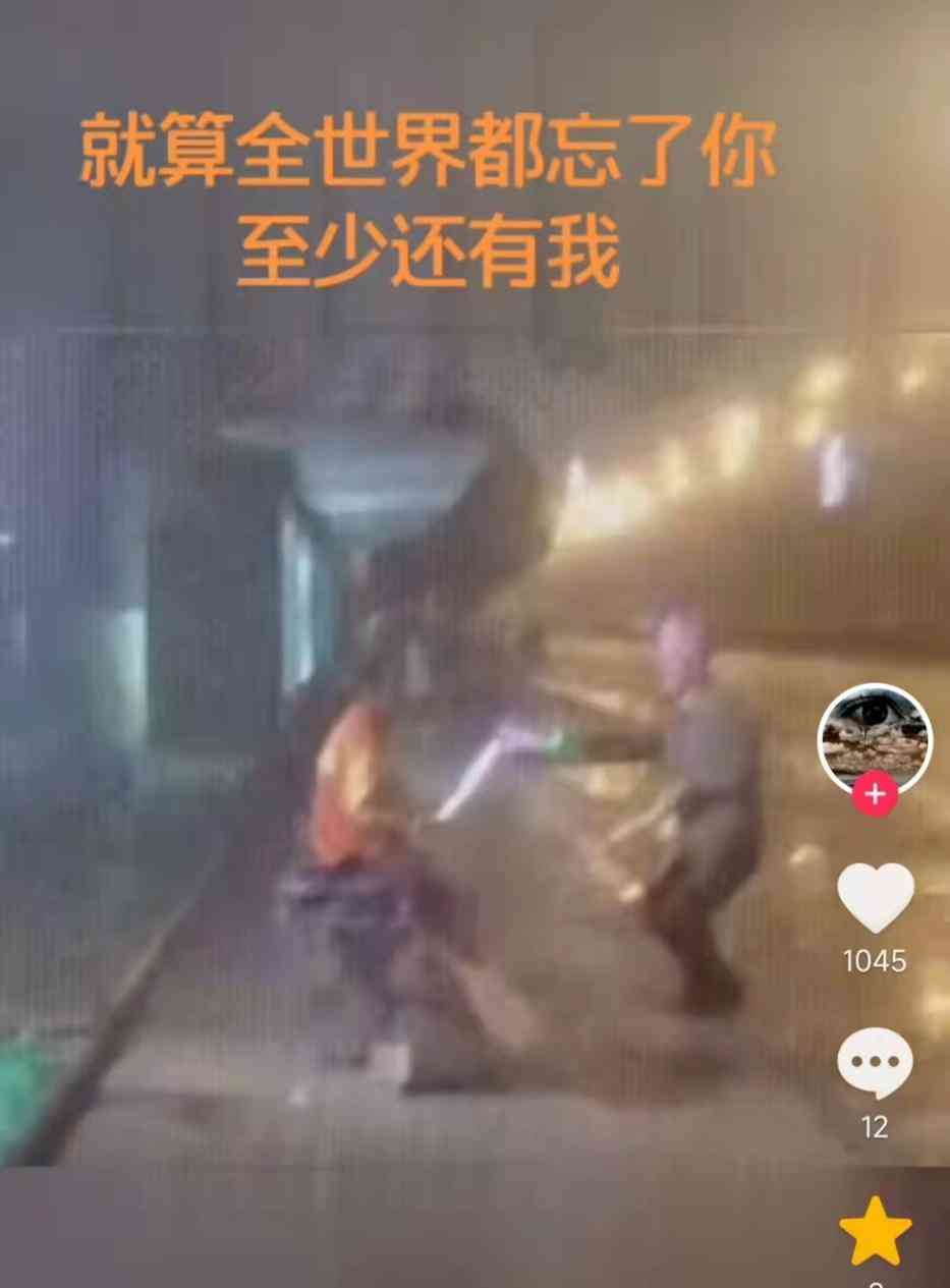 在凌晨无人的大街上,老爷爷把清洁工老伴扶坐在椅子上,拿着荧光棒跳着生硬的舞蹈为老伴庆生。