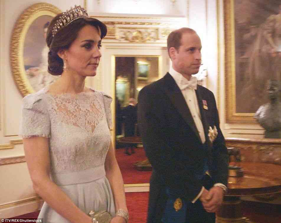 她第三次佩戴这顶王冠是在2017年7月12日,当时女王在白金汉宫为来访的西班牙国王夫妇接风,凯特也一起出席了晚宴。