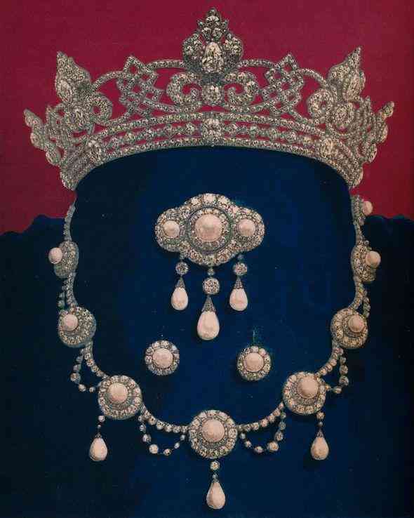 用来搭配“珍珠泪”王冠的是凯特王妃的科林伍德珍珠耳环,以及格雷维尔夫人留给王室的红宝石Y形项链。