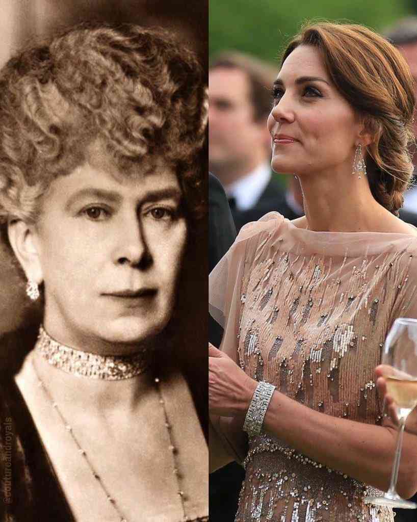 搭配的是一条由玛丽王后的choker改造而成的钻石手链,可能有人会说凯特的仪态不好看、品味太单一,但是没有人说凯特佩戴的珠宝不好看。