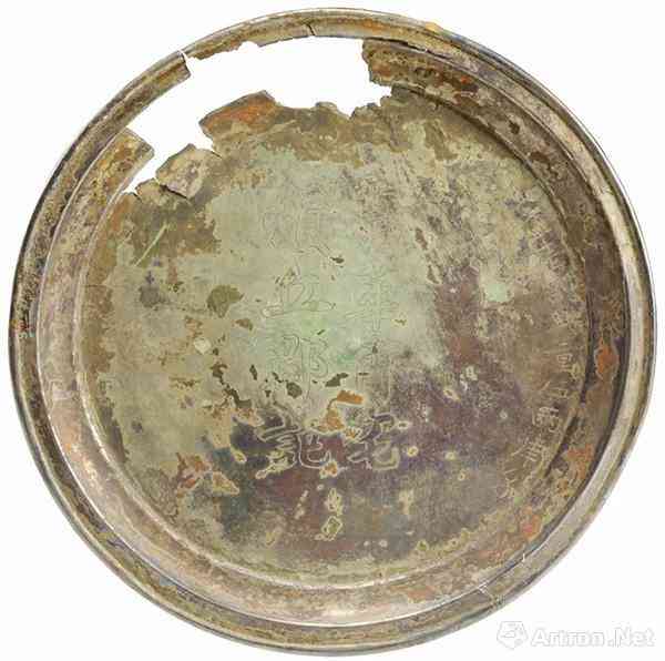 银盘 高1厘米,口径16.6厘米,底径13.1厘米。在内底双钩线刻“葛华甫宅顿丘郡记”