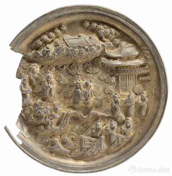 盘 高1厘米,口径17厘米。图案似为唐明皇梦游月宫故事
