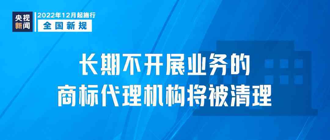 《商标代理监督管理规定》12月1日起施行,明确建立健全商标代理机构备案制度,通过完善办理备案程序,对长期不开展业务、空占行业资源的代理机构予以清理。