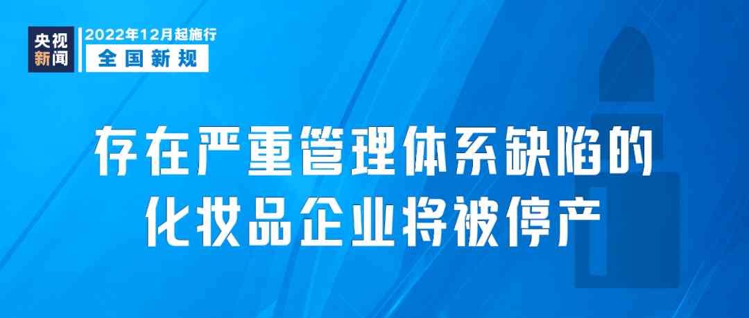 《化妆品生产质量管理规范检查要点及判定原则》12月1日起施行,明确对检查判定为“生产质量管理体系存在严重缺陷”的企业,采取责令暂停生产、经营等紧急控制措施,及时控制产品风险。